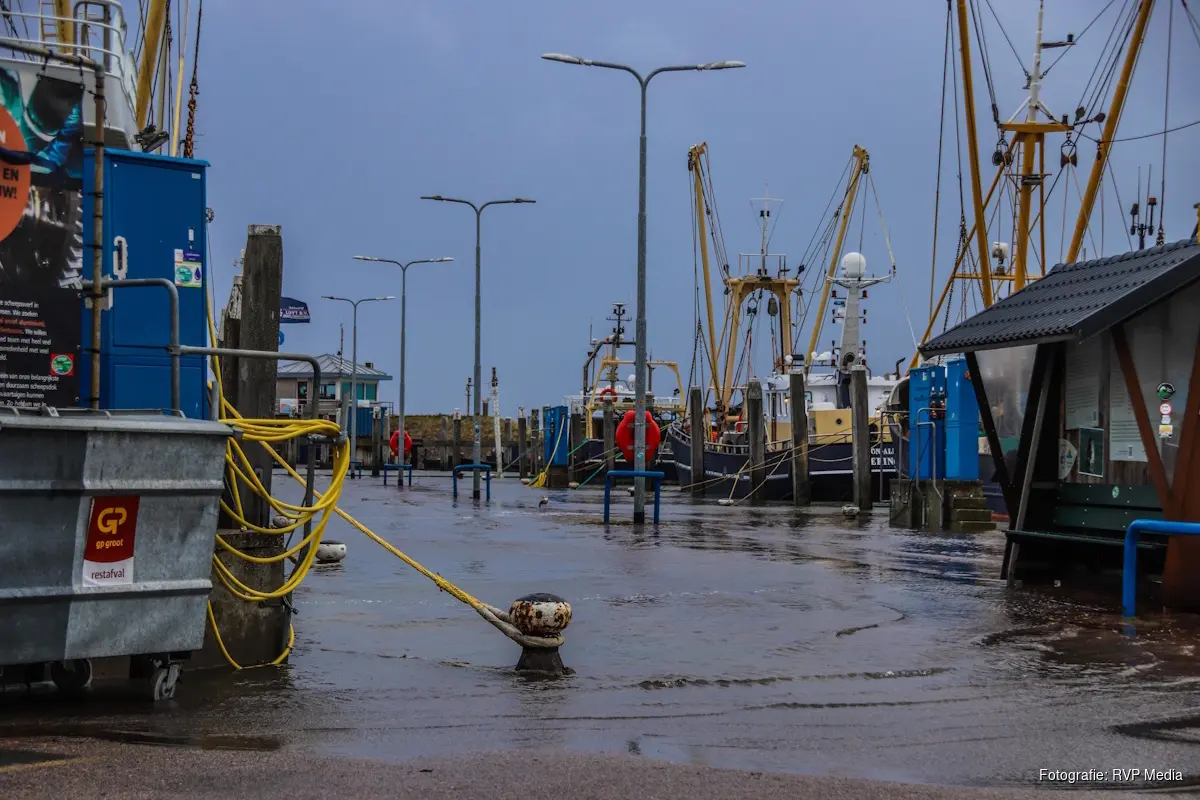 Ook de visafslag van Den Oever liep vol met water. Medewerkers troffen zondag een natte werkvloer aan. De deuren van de visafslag waren ter voorbereiding al open gezet om zo schade te beperken.